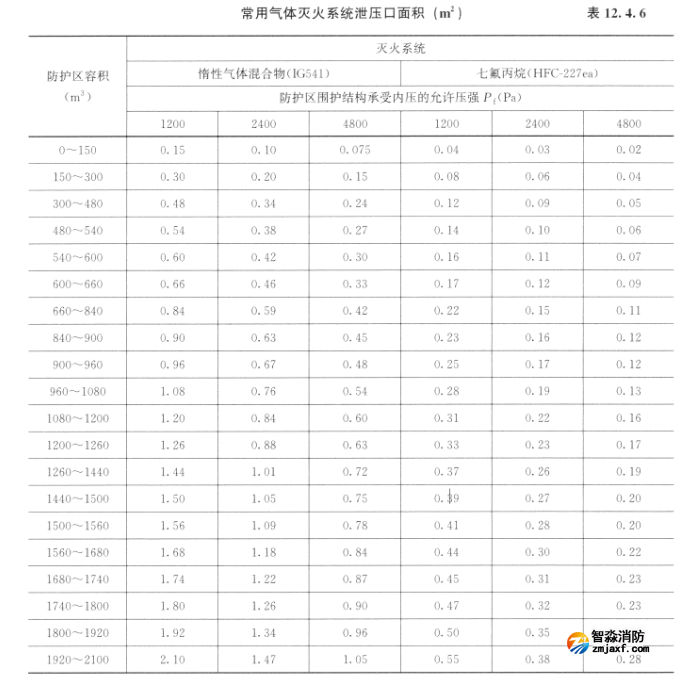 根據(jù)規(guī)范3.2.6防護區(qū)圍護結(jié)構(gòu)承受內(nèi)壓的允許壓強,不宜低于1200Pa,則Pf取值一般為1200。防護區(qū)的平均噴放速率Qx=設(shè)計用量/噴射時間。